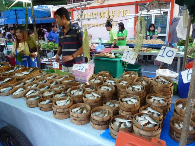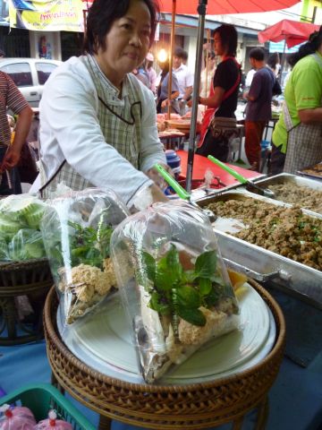 チェンライ、地元のマーケット。 夕飯のお惣菜を買いに来る人達で賑わいます。