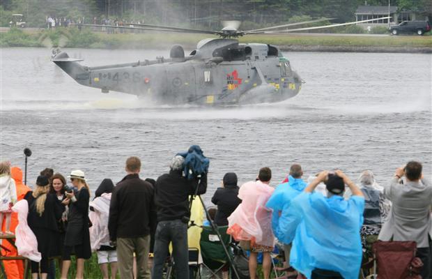 若く、活発的な二人だからか、アクティブ体験の多い催し物が続きました。 ウイリアム王子、雨の中、大きなヘリコプターの緊急着陸練習で、湖の水面に着水させて歓声を浴びてました。 難しい操作らしいのですが、イギリスの軍隊で公式免許も取得している王子はもっと難しい状況で一杯飛んでいるので平気だとの事。