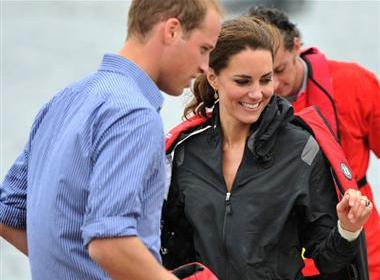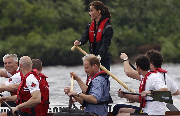 そして、ドラゴンボートでケイトさんの乗るボートと競争。 ウイリアム王子の乗るボートが少しの差で勝ったので、降りて、”もう!” と王子を押すケイトさんが可愛い。