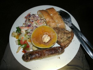 コックさんがいる場合、ベジタリアンやスペシャルダイエットが必要な人のメニューもこなし、西洋的な食事から地元の食事と出来るだけバラエティーに富んで作ってくれます。 もちろん、毎日食材を買い出しできるわけではないですし、キャンプ場でのキッチンやブッシュキャンプでは施設が整ってない中、大勢の食事を1人で作りますからレストランで食事をするようなわけにはいきません。 食事がまだかな~ と文句を言う人も若干いましたが、ヘッドランプを付け暗い中他のツアー会社のコックさん達とキッチンをシェアーしながら作ったり、夜遅くまで1人で片付けをしたりと、それが仕事とは言え、そんな様子や条件を考慮すると感謝の気持ちで食事を頂きたくなります。