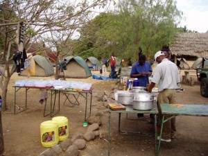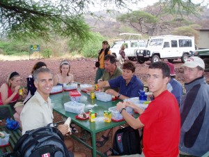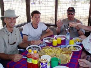 アフリカサファリツアーの食事の様子