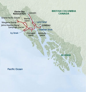 アラスカクルーズで人気、ジュノーなどアラスカの小さい街や氷河を訪れる入江クルーズはスモールボートでアクティブ豊富なUncruiseでの旅も面白いです。