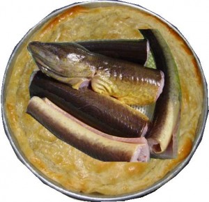 そして、最後はご家庭でサルデーニャで有名なウナギパイ作り。 生きたウナギを叔母さんカットしてさばいてました。 色々香辛料、ポテトや野菜を入れ最後に生の10cmくらいにぶつ切りにしたウナギを山盛りにして、パイの生地で覆ってオーブンで焼いてました。 ウナギの油が全てこもるような料理です。 オランダに行った時、海岸線の村の屋台でウナギのサンドイッチを試した事があります。 (ベジタリアンですがたまに魚介類は食べます。 でも魚の種類によってはアレルギーがある事判明。 むやみややたらに試さないようにしてます。)