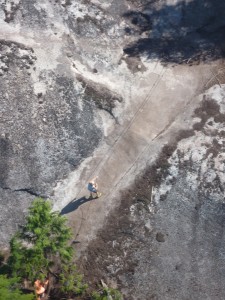 下を眺めるとハイカーが。 場所によってはロープを使い登るハイキングコース