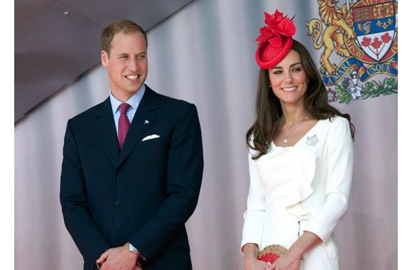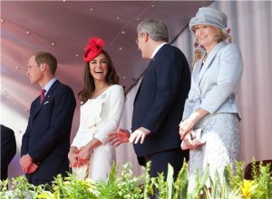 注目の今日のケイトさんのファッションは Lock & Co ブランドのデザイナー、シルビア・フレッチャー (Sylvia Fletcher )さんのデザイン、カナダの国旗の色、赤と白で。 そしてエリザベス女王が1951年にカナダ初の訪問と昨年のカナダデーにつけていたメープルリーフのブローチが胸元に輝きます。