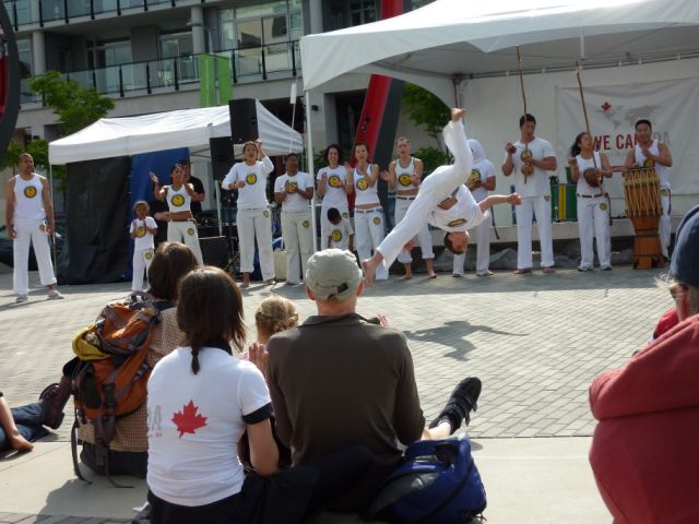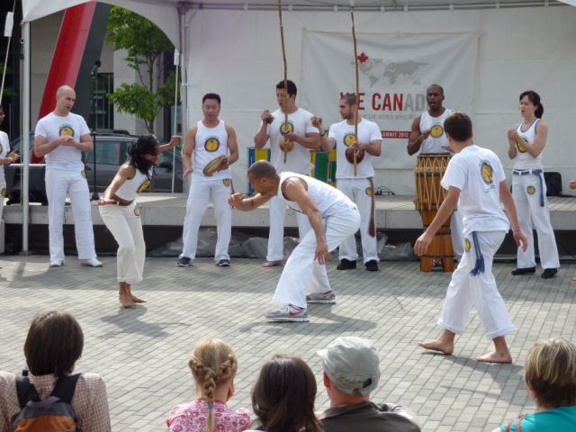 バンクーバーで流行ってきてるブラジルのカポエイラ・グループによるパフォーマンス。 ダンスから始まり、カポエイラへ。