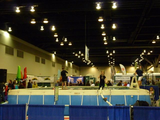 プールがありカイヤックやパドルボードが試せます。 その他ステージで説明会もあります。