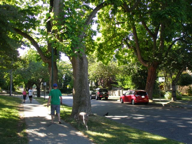 キツラノを初め、グランビル通りから東は得に木々も古く、街路の木が大きく夏は青々とした緑の葉をつけ日陰になって自転車で走っても涼しく気持ちいいです。 この辺りの家は古く、それぞれがユニークな作りでキャラクターハウスと呼びます。 家々を見てるだけでも面白いですよ。