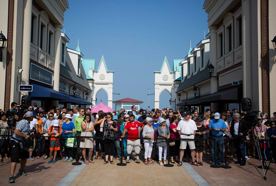 バンクーバー空港からスカイトレインで2区目のマッカーサーグレン・デザイナーアウトレットモール McArthurGlen Designer Outlet が本日(2015年7月9日)オープンで長蛇の列! 空港までの道も渋滞でパイロットも遅れてしまったとか・・・