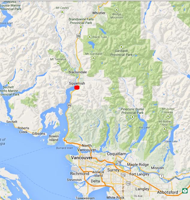 バンクーバーからウイスラーに向かう途中、スクワミッシュの2キロ手前に新しい観光名所が本日オープン! 山の上からの眺めが最高の シー・トゥー・スカイ ゴンドラ!