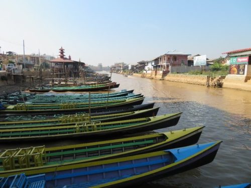 (左)インレー湖観光ボート乗り場(右)まずは川を通り湖へ!