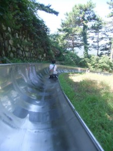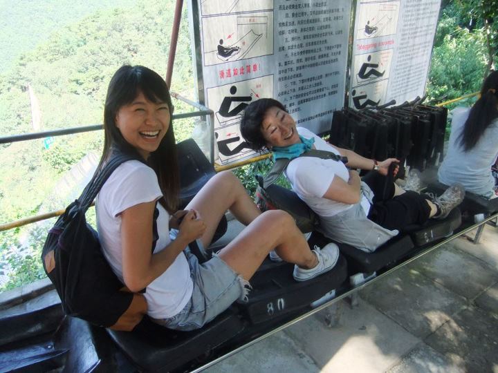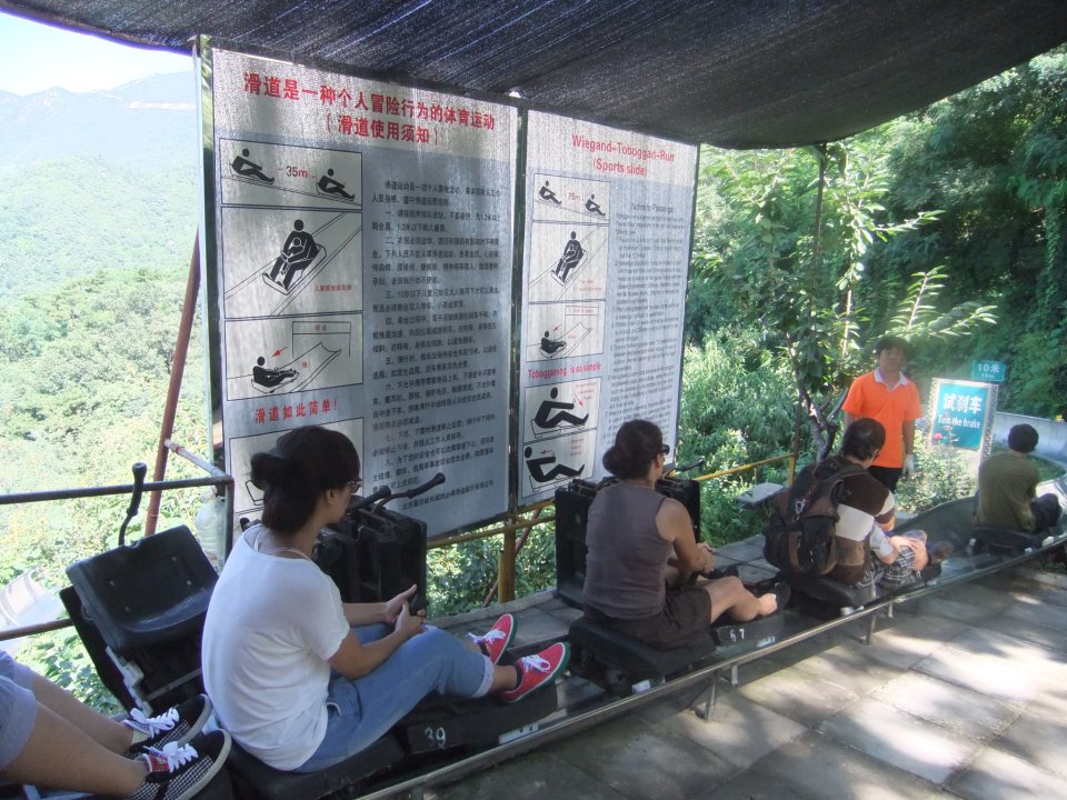 万里の八達嶺長城の一つのゲートから乗れるオプショナルの一つ、スライダー/Tobogganという乗り物で、長城から降りてくるのに利用。 ロープウェイもありますが、こちらの方が断然おすすめとの事です。