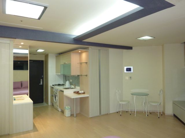 部屋は、アパートの一室なので、キッチンもついてます。 ただ、大きな冷蔵庫はいいですが、コンロは鍋やお皿がないので、料理は出来ません。 カップとお湯沸かしポットがあり、コーヒーとお茶が付いてるの温かい飲み物はOK。 コンビ二にレンジはあるので、遅くに着いても何か食べる事は大丈夫です。