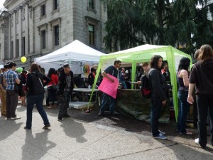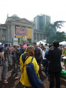 ロブソンスクエアーではサルサダンスしてました。 それ以外はそれ程何もなく、カナダプレイスの辺りの方がいいです。 カナダプレイスの中でも催し物一杯です。 下記は美術館の裏でマリファナを法律化しようという活動の人達の集まりで、マリファナやタバコ、マリファナ入れたケーキやクッキー(オランダのスペースケーキみないなの)等売ってました。 もちろんバンド付き。 外なのに煙ってて、マリファナだか、タバコの匂いが漂って気分悪くなりました。 マリファナはHIV患者には良いらしいです。 花粉症にも効くとか。 タイでマラリアにかかった人が病院のない島でマリファナと水で回復したそうです。